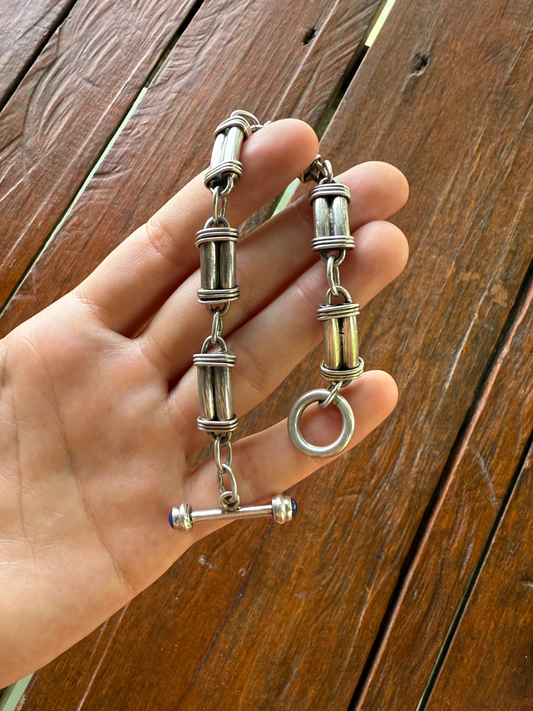 Roped Bar Bracelet – Toggle Clasp with Lapis Lazuli