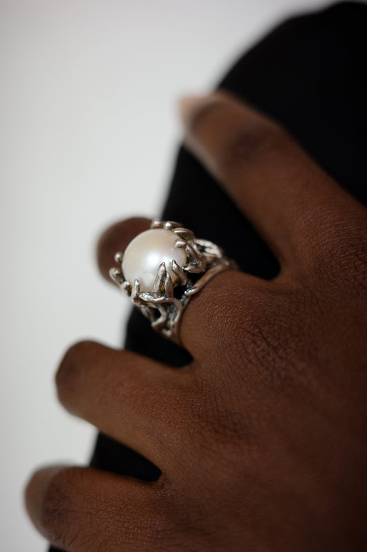 unique brutalist pearl ring