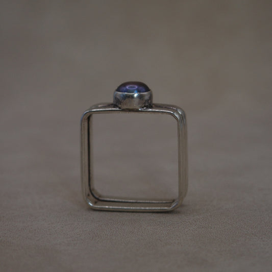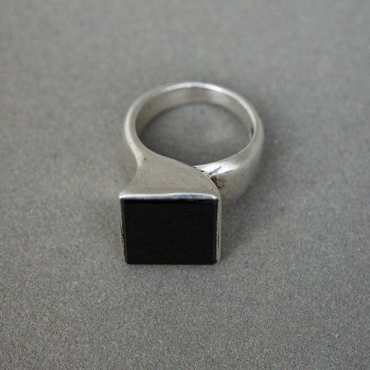 Modernist square ring with black pearl