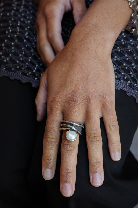 Studio crafted wide mother pearl ring