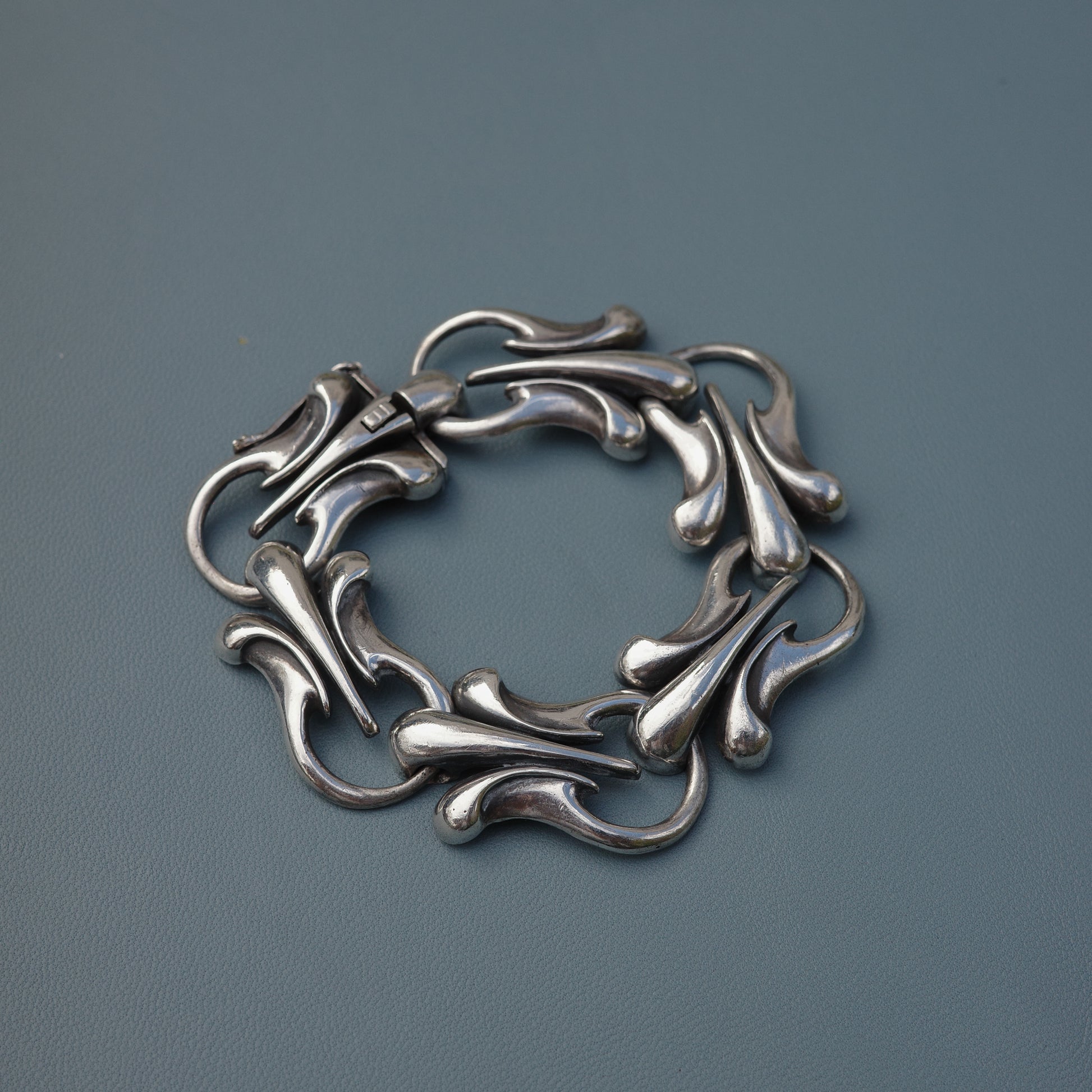 A rare find sourced in Belgium, this bracelet evokes the flowing, organic curves of the Art Nouveau era (c. 1890–1910) with its sculptural floral links. It features a sturdy box clasp that clicks securely, and while the maker’s mark is illegible, all purity marks are present. This is a piece that carries the spirit of everyday elegance with just the right amount of drama. Wear it solo and let the design speak.