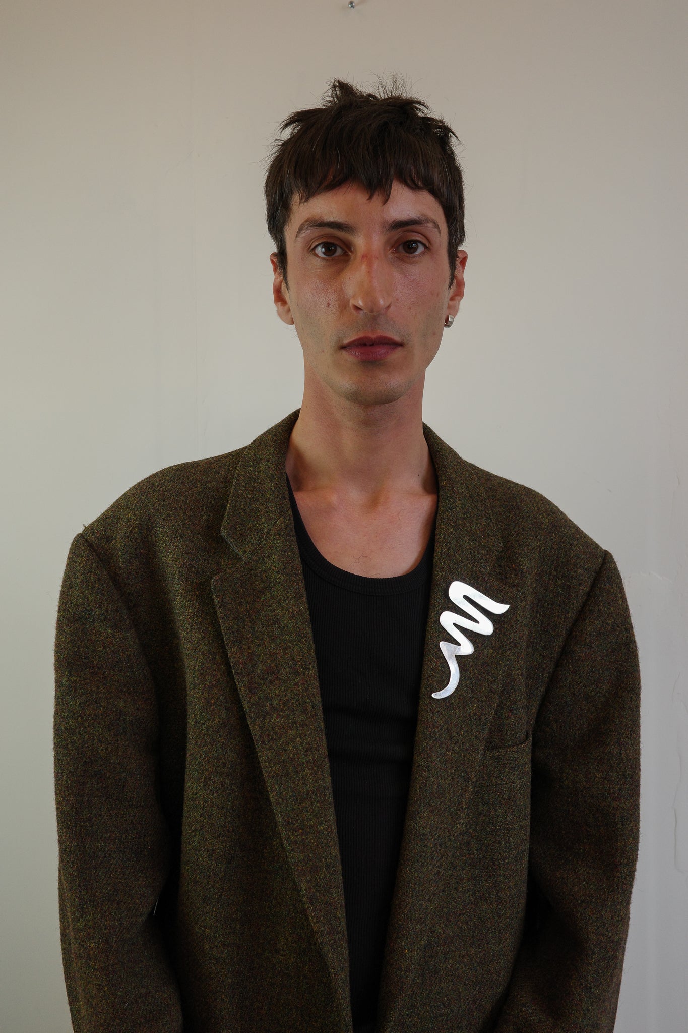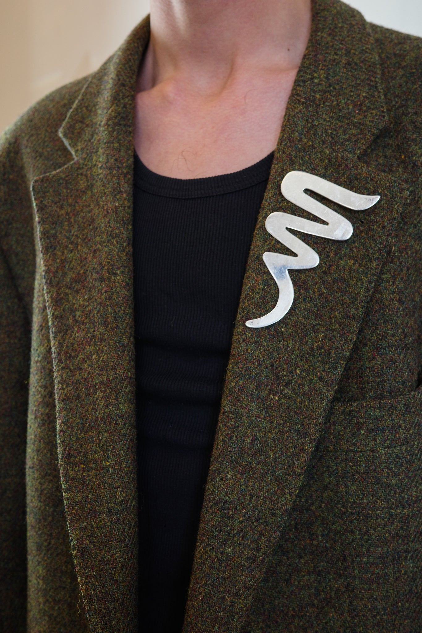 A bold and sculptural treasure from Taxco, Mexico. This large modernist piece can be worn both as a brooch and a pendant, offering versatility without compromising on impact. Measuring 11 cm tall and 6 cm wide, it’s an eye-catching form with fluid, abstract curves.