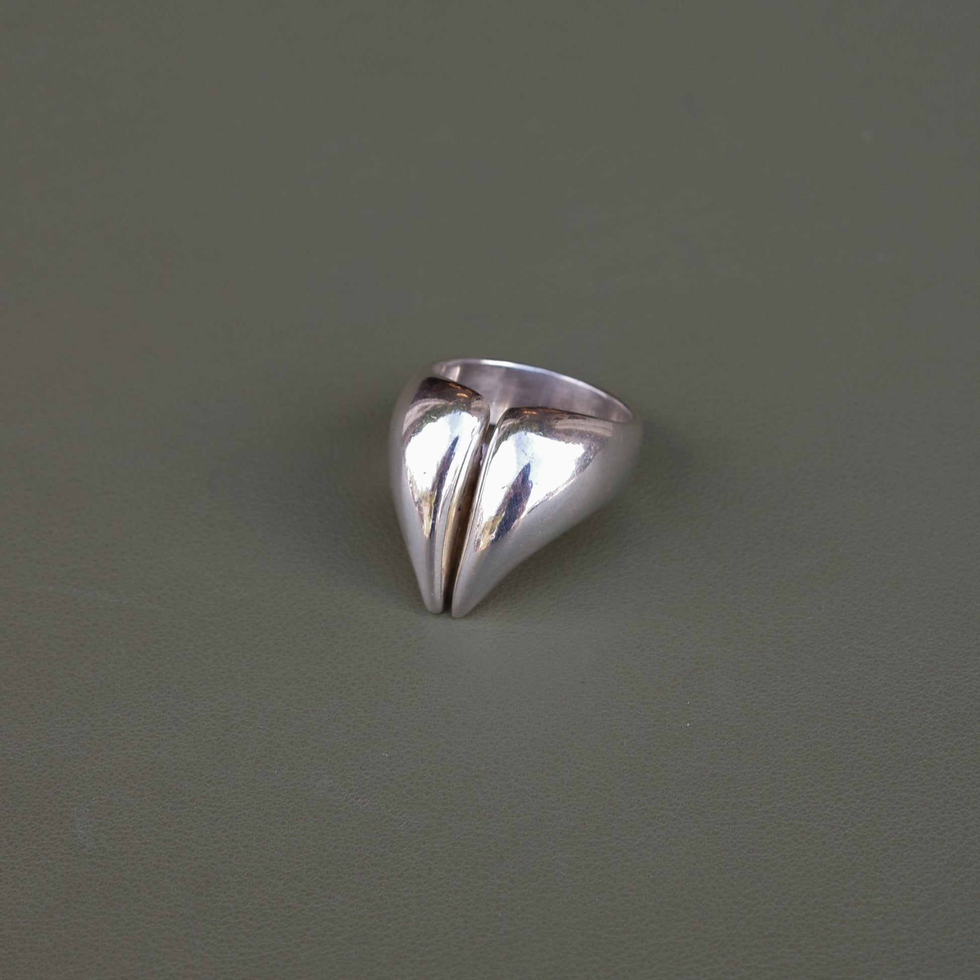 Solid sterling silver statement ring by N.E. From — one of Denmark’s most recognisable modernist designers. The split form gives it a claw-like edge, sharp yet round, expressive without excess. Works beautifully layered with other sculptural pieces or worn solo as a focal point. Marked 925S N.E. From Sourced in Denmark.
