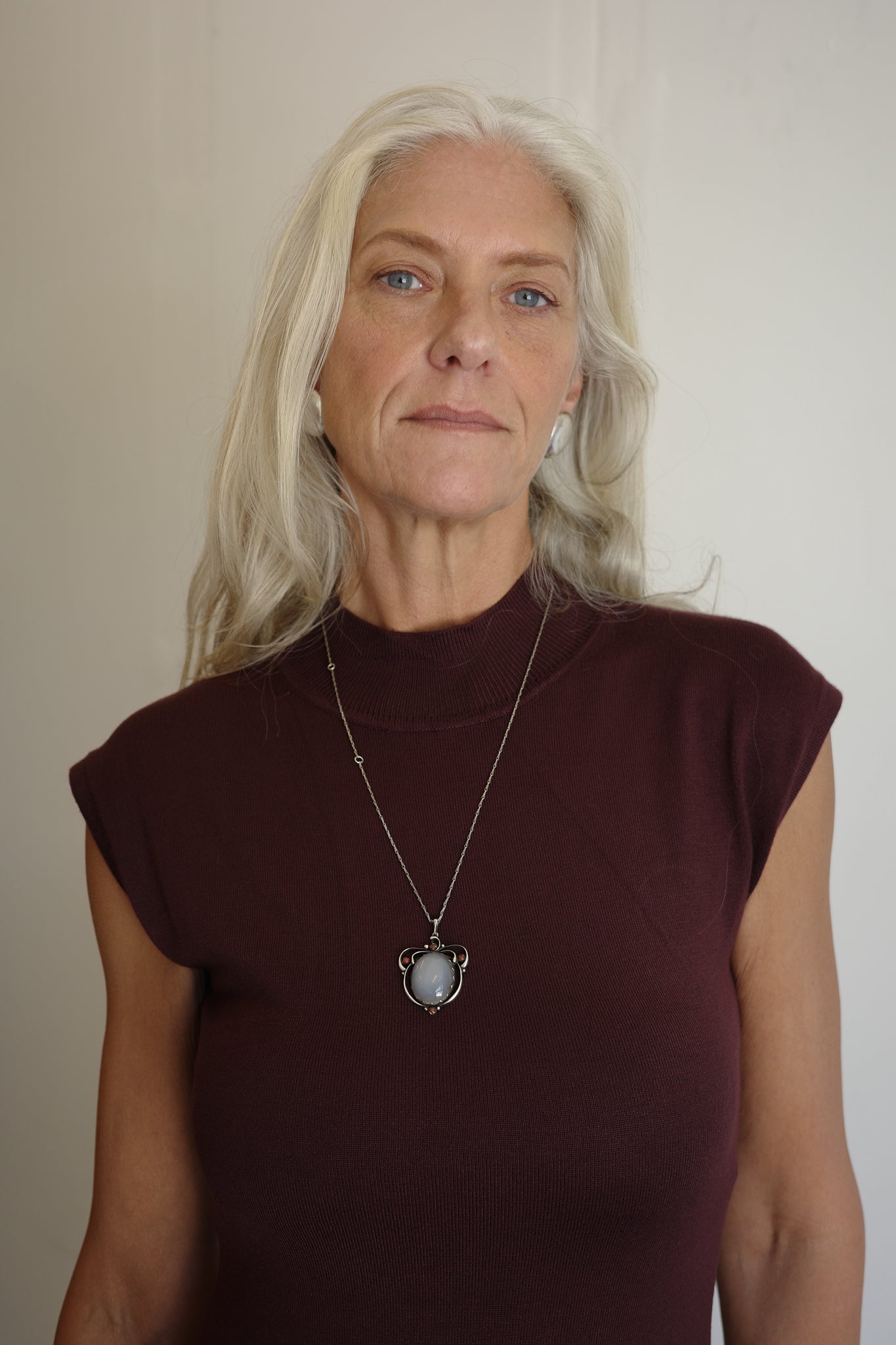 Art Nouveau necklace sourced in Belgium, strung on a fine silver chain. The pendant speaks in soft, sculptural curves — typical of the 1890–1910 era when design moved towards nature, femininity, and fluidity. A large moonstone/quartz cabochon is set at the center, framed by delicate silverwork and tiny blood coral accents. Mystical, romantic, and full of old-world presence. One to hold onto.