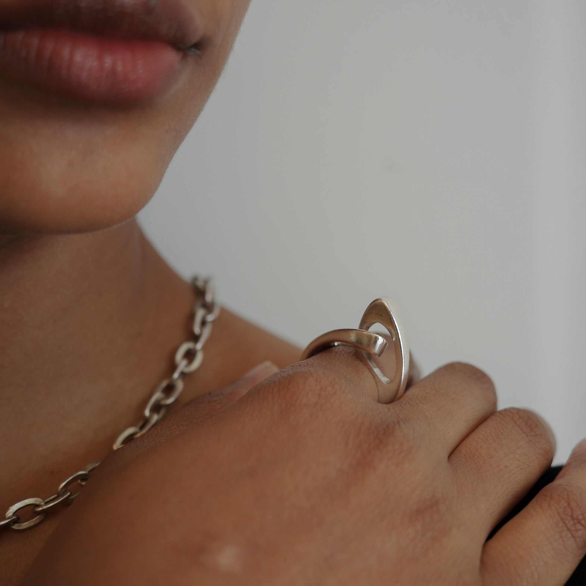 A sculptural and intelligent creation by N.E. From, this interlink ring from circa 1975 is a rare example of postmodern Danish design. The form is bold yet fluid, with its interconnected structure evoking movement and balance. Sourced in Denmark, it’s a forever statement piece—one that speaks to thoughtful craftsmanship and artistic flair.