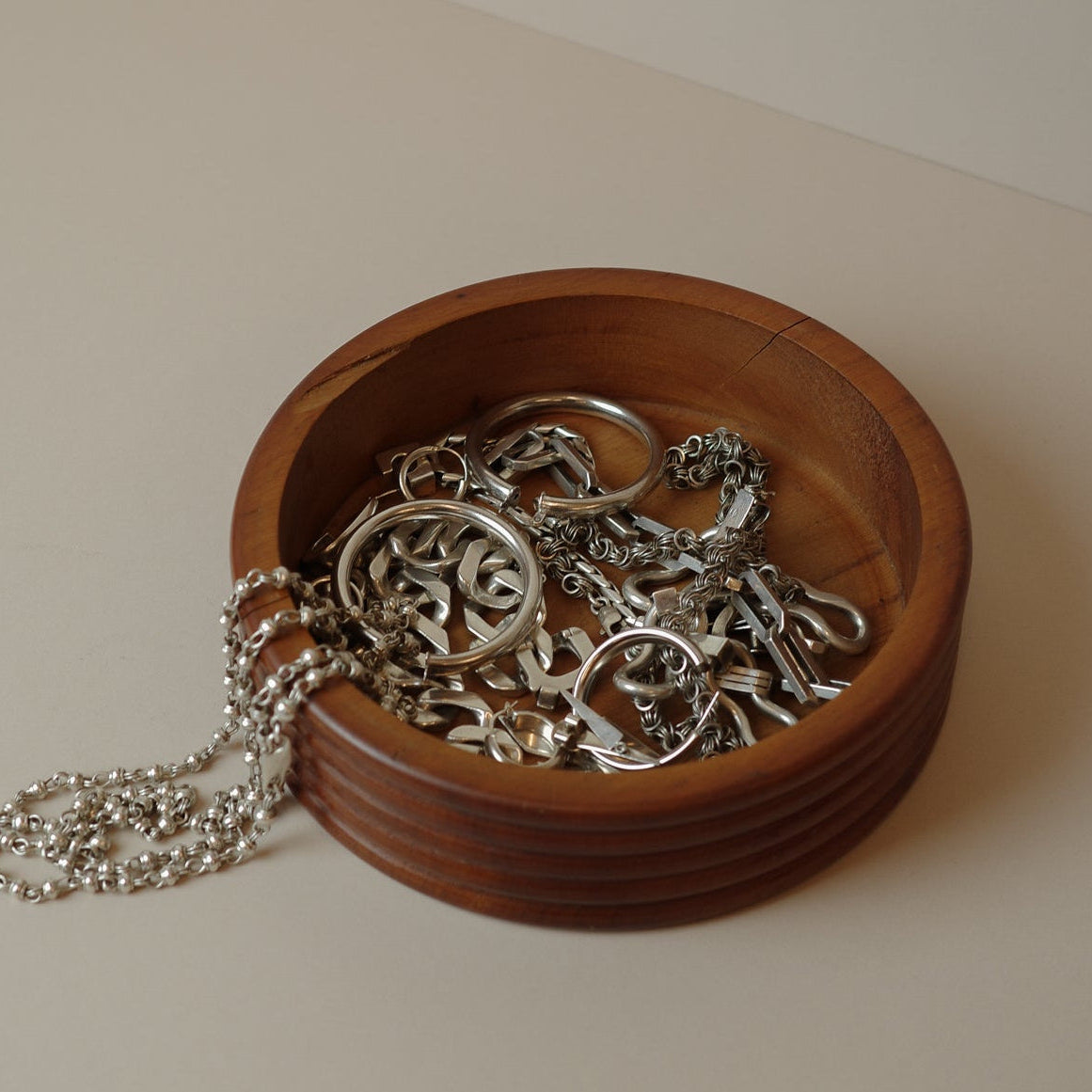 Vintage hand-turned wooden box with lid, signed J. Navour Maroc, 73 on the base, likely indicating Moroccan origin and the year 1973. Featuring concentric carved rings and a rounded finial, the design blends Art Deco and modernist influences. Beautiful natural patina and artisan craftsmanship throughout. A unique decorative storage piece or collector’s item.